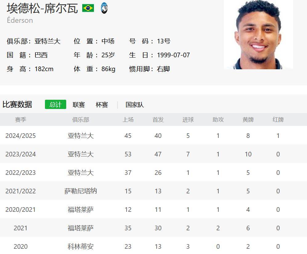 埃德松·席尔瓦自从在萨勒尼塔纳打响名号后,转会至亚特兰大并迅速确立了主力地位。凭借近两个赛季的优秀表现,他现已成功跻身意甲顶级中场行列,众多豪门的邀约无疑是对他实力的最佳证明。